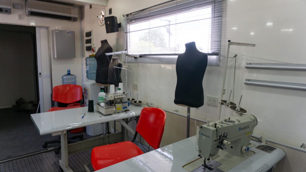 El Gobierno provincial, a través de la Subsecretaría de Emprendedurismo Urbano y Rural del Ministerio de la Producción y el Desarrollo Económico Sostenible, junto a la Municipalidad de Sáenz Peña, presentaron el Aula Taller Móvil, un espacio que tendrá como objetivo central la capacitación a los emprendedores en oficios textiles y marroquinería, fortaleciendo sus conocimientos y a la vez mejorar la calidad de sus productos.